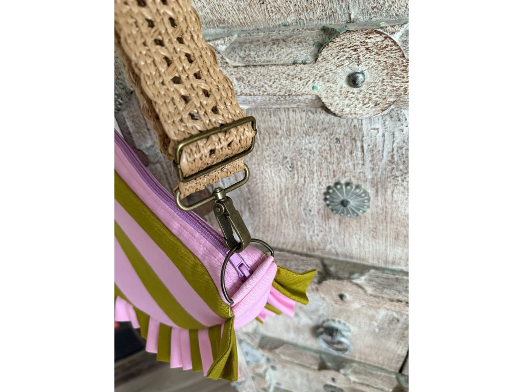Právě díky karabinkám smíte popruh kdykoliv odepnout a využít jej jinak - připnout na jakoukoliv jinou kabelku či tašku a nebo třeba (za pomoci přídavného poutka)jako popruh na mobilní telefon.